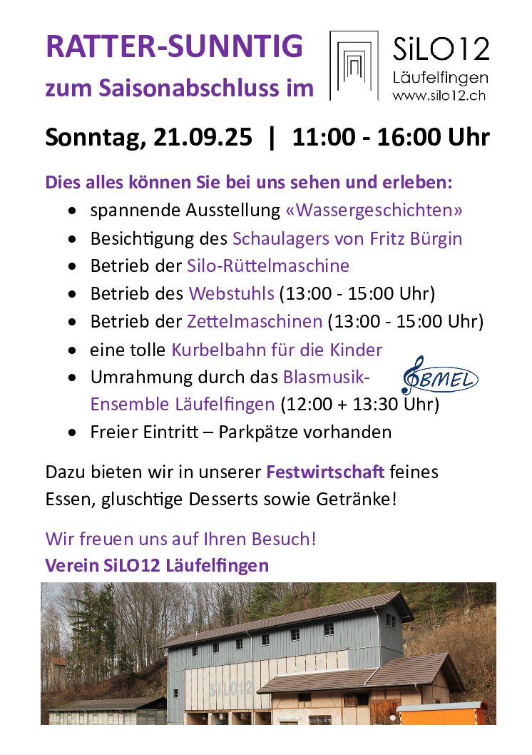 Am Sonntag, den 21.9.2025 findet in Läufelfingen im SiLO12 der RATTER-SUNNTIG statt